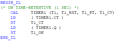 (* TON1 is a declared instance of TON100ms function block *)
