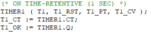 (* TON1 is a declared instance of TON10ms function block *)